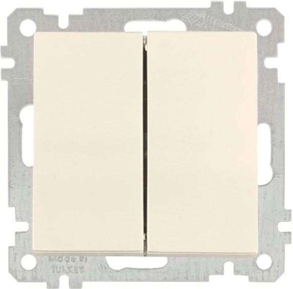 Выключатель двухклавишный, цвет крем, CANDELA применяется для управление сетями освещения в жилых помещениях, на инфраструктурных объектах и объектах коммерческой недвижимости.