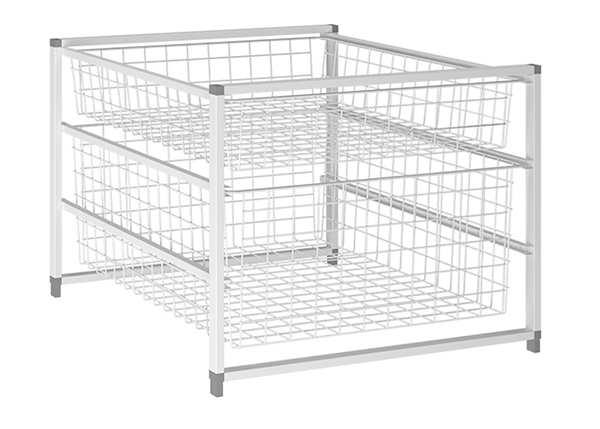 Стеллажный комплект белого цвета с сетчатыми корзинами в 3 яруса. Идеально подойдет для хранения самых разнообразных предметов, одежды, инвентаря.