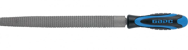 Рашпиль изготовлен из стали 45, имеет агрессивную насечку , твердость 40…42 HRC. Двухкомпонентная рукоятка обеспечивает комфортный хват при работе. Рашпиль предназначен для опиливания изделий из дерева и пластика.