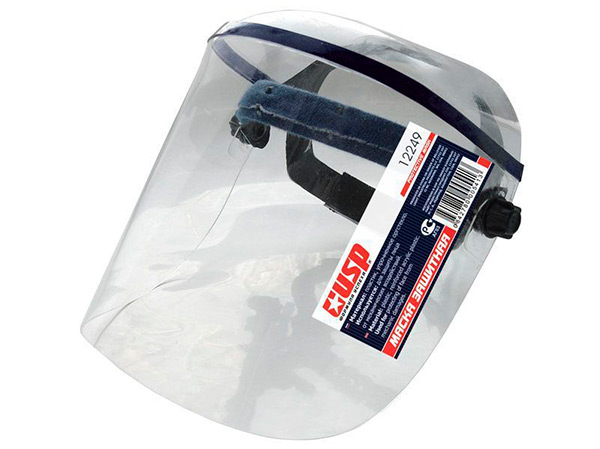 Для защиты лица и глаз от механических повреждений. Материал: пластик, упрочненное оргстекло.