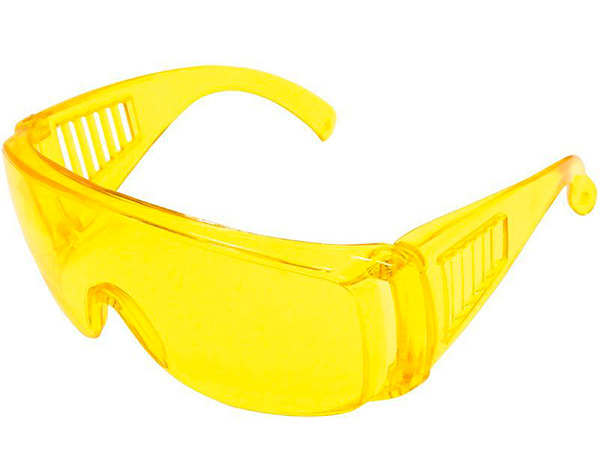 Желтые. С дужками. Предназначены для защиты глаз от пыли, окалины, краски, стружки при работе при ярком солнечном свете или в свете прожектора.