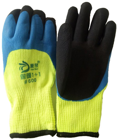 Перчатки акриловые c вспененным латексным покрытием 600 (салатово-синие с усиленным двойным обливом ладони, зима) предназначены для защиты рук от проколов, порезов и истирания при выполнении строительных, промышленных, сельскохозяйственных и бытовых работ. Выполнены из нейлоновой (акрил) пряжи и вспененного латекса с ребристой поверхностью. Перчатки с рифленым покрытием отличаются хорошим захватом и повышенной прочностью. Ярко-салатовая ткань обеспечивает повышенную видимость для дополнительной безопасности.