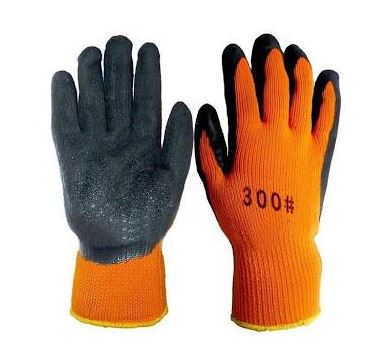 Перчатки ХБ # 300 оранжевые утепленные облитые вспененным черным латексом - одна из самых востребованных перчаток в осенне — весенний и зимний период