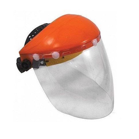 Щиток лицевой имеет удобное наголовное крепление, которое допускает простую регулировку, с помощью которой обеспечивается комфортное для пользователя положение изделия на голове. Щиток представляет из себя индивидуальное средство защиты, которое служит для защиты лица от физических воздействий в процессе производства разных видов работ. Установлен прочный экран из оргстекла, отличающийся значительной прозрачностью. Верхняя часть щитка имеет оранжевый цвет, который способствует заметности пользователя изделия в сложных погодных условиях и при слабой освещенности.