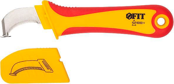 Нож FIT 10604 изолированный 1000 В с пяткой, нерж.сталь, 170 мм, лезвие 37 мм, прорезин.ручка.