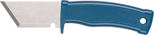 Две режущие кромки. Применяется для резки листовых материалов (кожа, линолеум, резина,шпон,брезент), резьбы по дереву, обрезки веток, ремонта обуви и других изделий. Трапециевидное лезвие со специальной выемкой для удобства при заточке. Антискользящая пластиковая рукоятка. Материал: инструментальная сталь, пластик.