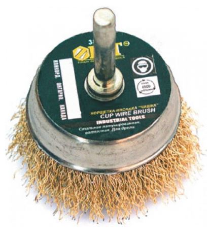 Корщетка-чашка FIT IT 38516 является сменным элементом для дрелей. Применяется для зачистки от лака, краски и ржавчины различных поверхностей и изделий. Рабочая часть состоит из стальной волнистой проволоки с латунным покрытием.