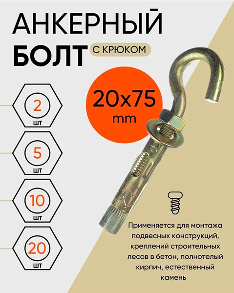Анкер болт с крючком HG 20х75 (уп20шт)