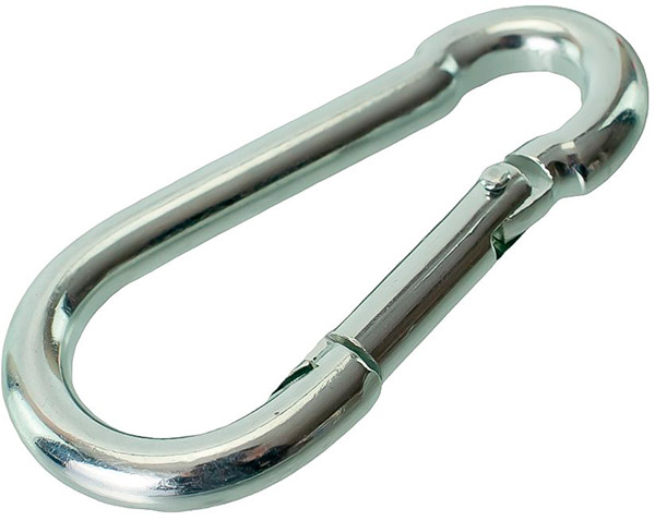 Применяется для быстрого, простого, надежного, разъемного соединения между собой цепей, тросов, веревок, ремней и т.п., а также для крепления их к различным конструкциям и основаниям. Имеет грушевидную форму круглого сечения с пружинной защелкой. Размер определяется по диаметру поперечного сечения. Используется в быту, строительстве, судостроении, при погрузочно-разгрузочных работах.