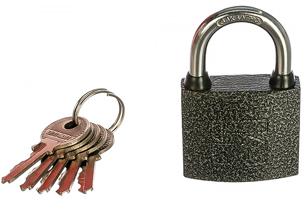Модель защелкивается прижимом дужки. Стыки дужки и замка защищены резиновыми прокладками от попадания внутрь влаги. Прочный металлический механизм открывается определенным ключом с уникальным кодом.