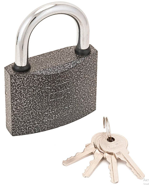 В комплект входят 5 стальных ключей. Корпус замка покрыт полимером, защищающем от коррозии.
