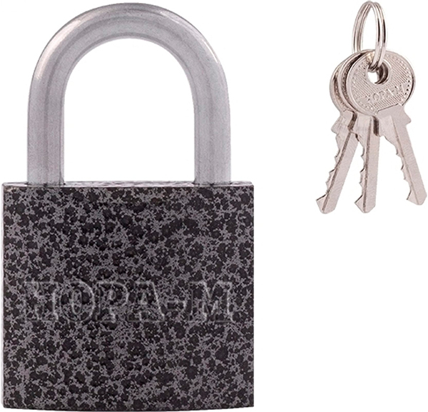 Замок навесной маленький обладает автоматическим запиранием. В комплекте 3 стальных ключа.