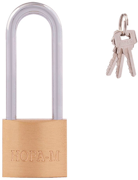 Оснащен дужкой из закаленной стали (штамп HARDENED - закалено). Выпускается в 4 размерах - 30, 40, 50 и 60 мм.