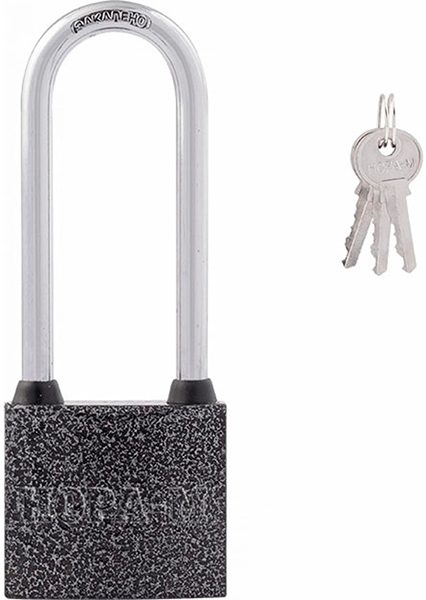 Навесной замок общехозяйственного назначения. Материал корпуса - сталь, цилиндра - латунь, дужка сделана из закаленной стали, в комплекте 3 стальных ключа. Для удобства в использовании дужка имеет удлиненную форму. Замок автоматически запирается без использования ключа. В процессе эксплуатации рекомендуем смазывать замок дужки и цилиндр графитовой или силиконовой смазкой.