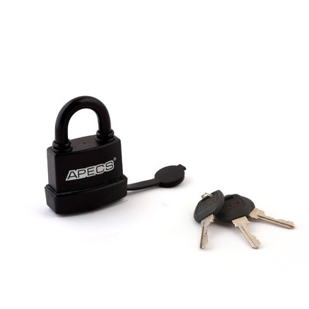 Всепогодные навесные замки Apecs серии 50 - высококачественные навесные замки из чугуна в пластиковом чехле, превосходящие по качеству большинство аналогов на рынке. Пластиковый чехол выполнен из морозоустойчивого материала, не подверженного растрескиванию при температуре до (-40) градусов. Заглушка на цилиндр из мягкой резины превосходит аналоги с пластиковой заглушкой по сроку службы.  В замках используется полноразмерный латунный цилиндровый механизм и пружины из  нержавеющей стали. Фиксация дужки с двух сторон обеспечивает надежное запирание замка. В замках реализована функция автоматического запирания:  запирание замка осуществляется нажатием на дужку без использования ключа.