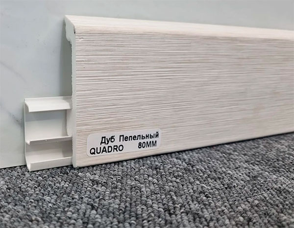 Предназначен для помещений с ламинатом, паркетом, линолеумом и ковровым покрытием. Полимер высокой прочности. Ударопрочный. 100% влагостойкий. Универсальный монтаж – клей или монтажная планка. Вид, форма и цветовая гамма идеально гармонирует с современным и индустриальным дизайном помещений. Монтаж электрических проводов, покраска стен, оклеивание обоями возможны без демонтажа профилей. Существует возможность размещения проводов, в том числе после монтажа. Благодаря простому снятию верхней части плинтуса, нет необходимости полного демонтажа плинтуса во время покраски стен или оклеивании стен обоями. Специальная многослойная технология, за счет которой достигается сочетание прочности и гибкости.