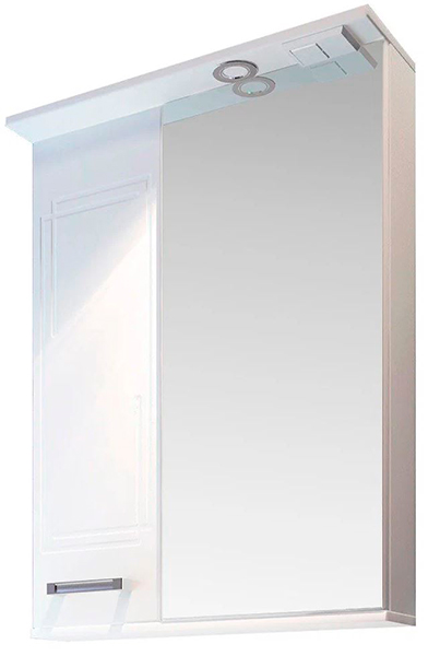 Шкаф оснащен подсветкой и розеткой. Имеет 3 полочки для хранения. В большое зеркало на фасаде удобно смотреть.