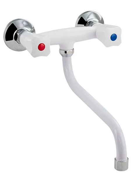Смеситель из высокопрочного пластика АБС - от стены, для кухонной мойки и раковин, с аэратором для экономии воды. Материал изготовления — пластик. Кранбуксы металлокерамика 1/2, ручки ромб поворот на 90˚. Габаритные размеры: ширина 155 мм, высота 200 мм, длина излива 250 мм, диаметр чашки 65 мм. Вес - 0,500 кг, объём - 0,00300 м3. В комплекте корпус с изливом, паспорт, крепёж .