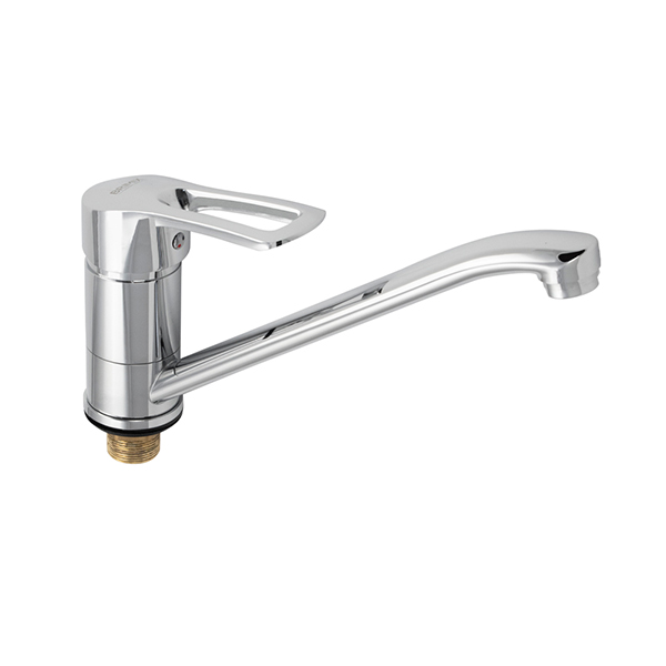 Смеситель для кухонной мойки и раковины, хромированный, с длинным, поворотным изливом, шаровый, ручка с дыркой. Материал изготовления — ЦАМ 40;цинк-алюминий-медь нержавеющая сталь , Крепление резьба - гайка, картридж d=40мм. Аэратор для экономии воды. Габаритные размеры: высота 120 мм, длина 290 мм, длина излива 240 мм, диаметр посадочного седла 50 мм, длина резьбы 30 мм, длина подводки 400 мм, вес - 1,100 кг, объём - 0,00200 м3. В комплекте паспорт, корпус, подводка 1/2, крепеж, набор прокладок.