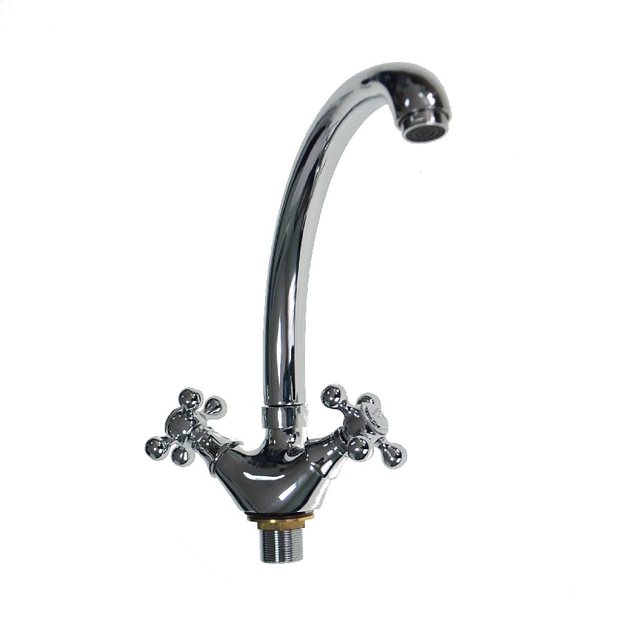Смеситель кухонный двуручный из металлокерамики (литой нос). Ручки вентили хромированные. Крепление на гайке. Данная модель оснащена аэратором для экономии воды.