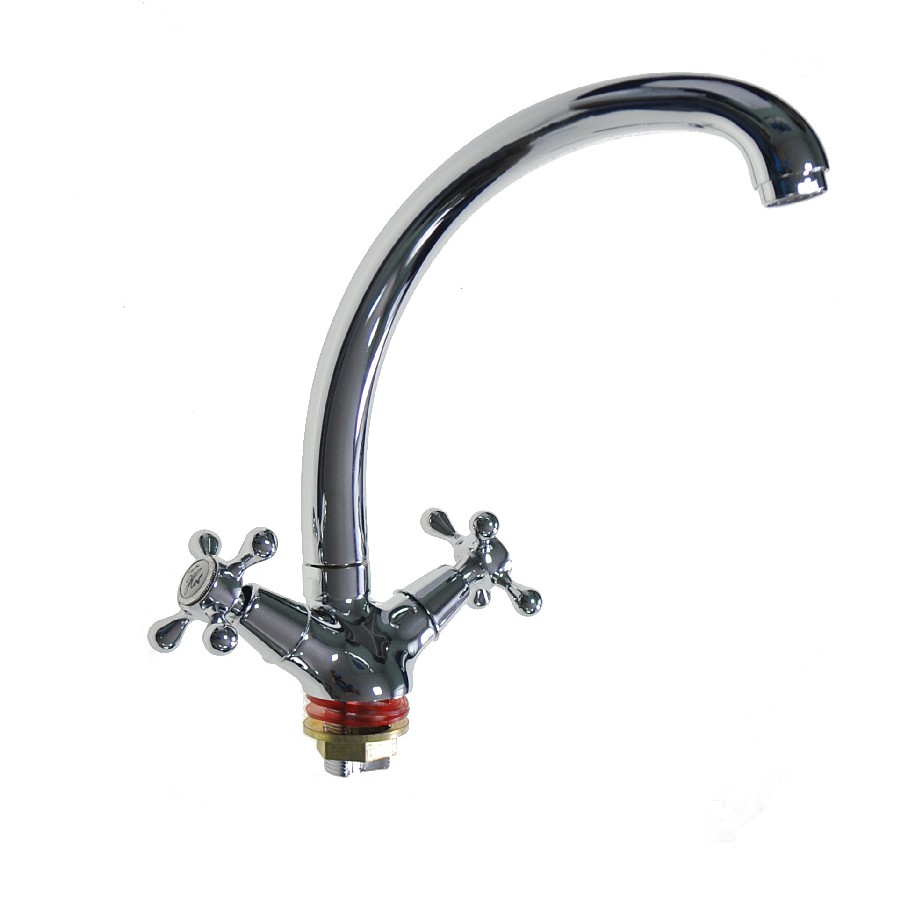 Смеситель на раковину, елочка, металлокерамика, ручки крест, гусак 40 см, на гайке, аэратор для экономии воды, подводка, комплект прокладок.