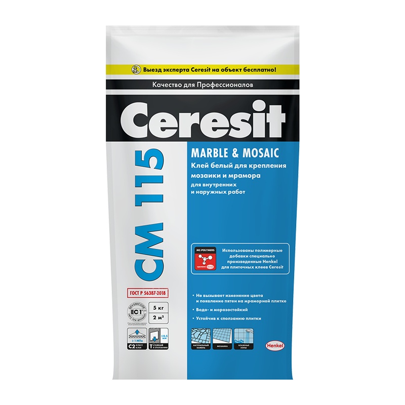 Клей CM-115 для мраморной плитки и мозайки 5кг CERESIT