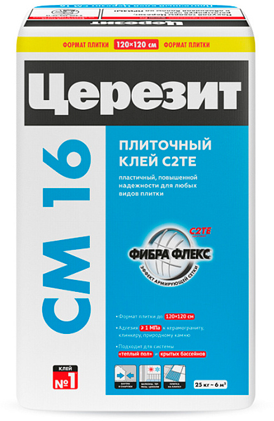 Клей CM 16 предназначен для крепления всех видов минеральных плиток: керамических, керамогранитных, клинкерных, из природного камня (кроме мрамора) размером до 1,2×1,2 м, на стенах и полах внутри и снаружи зданий, на таких основаниях как бетон, цементные и цементо-известковые штукатурки, цементные стяжки, легкий и ячеистый бетон, гидроизоляционные покрытия из материалов CR 65, CR 166 и CL 51.