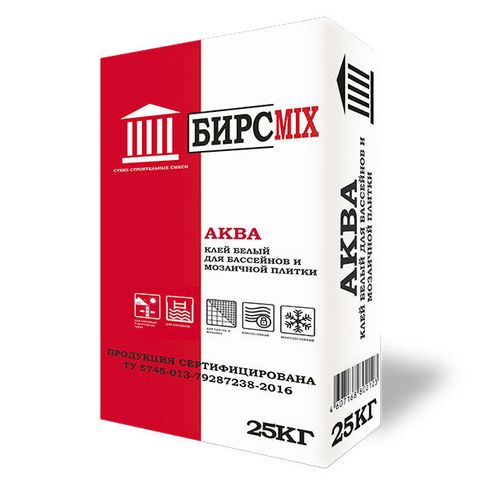Клей плиточный АКВА 25кг БИРСMIX белый для бассейнов и мозаики