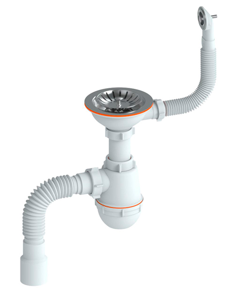 Сифон для мойки РМС СЕМ-К (П) с круглым переливом применяется для отвода стоков воды из мойки в самотечную канализацию. Сифон состоит из: круглого перелива, нержавеющей чаши Ø115, гибкого отвода в канализацию Ø40*Ø40/50, пластикового штока. Длина гофры 50 см. Вид сифона - бутылочный.
