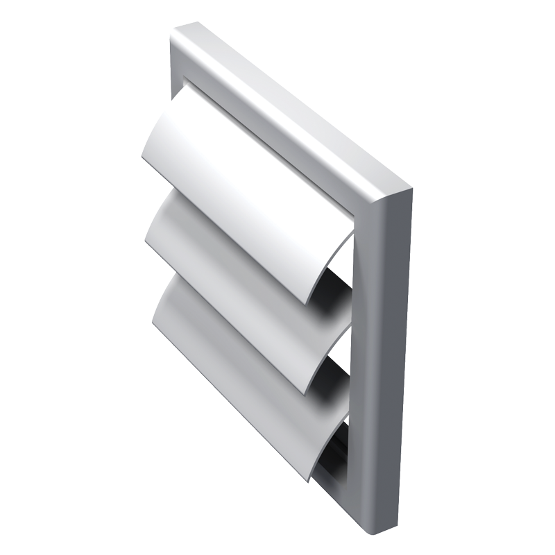 - Вентиляционная наружная пластиковая решетка с гравитационными жалюзи серии КФ изготовлена из ASA-пластика