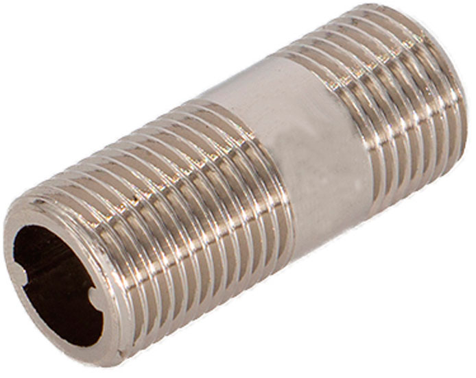 Сгон 1/2" ш/ш х 50 мм CTM с наружной резьбой предназначен для соединения частей трубопровода диаметром 1/2". Сгон изготавливается из высококачественной горячепрессованной латуни. Дополнительный запас прочности обеспечивается за счёт покрытия никелем, предотвращающим появление коррозии, а также защищающим от механического износа и вредного воздействия агрессивных жидкостей и воздушно-газовых сред.