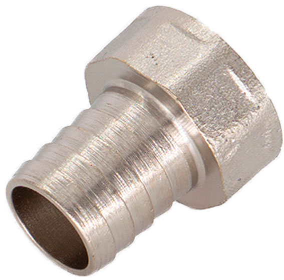 Штуцер под шланг с внутренней резьбой 1"х 25 мм CTM - резьбовой фитинг, предназначенный для подключения поливочного шланга к водозапорной арматуре или непосредственно к трубопроводу. Изделие можно применять также в других системах с неагрессивной к используемым материалам рабочей средой (горячая вода, незамерзающий теплоноситель, сжатый воздух и т.д.). Штуцер изготавливается из горячепрессованной латуни. Дополнительный запас прочности обеспечивается за счёт покрытия никелем, предотвращающим появление коррозии, а также защищающим от механического износа и вредного воздействия агрессивных жидкостей и воздушно-газовых сред. Присоединительный патрубок штуцера имеет внутреннюю резьбу, а сам штуцер для шланга имеет конфигурацию, эффективную для его фиксации. Присоединение шланга необходимо производить с помощью стальных винтовых хомутов.